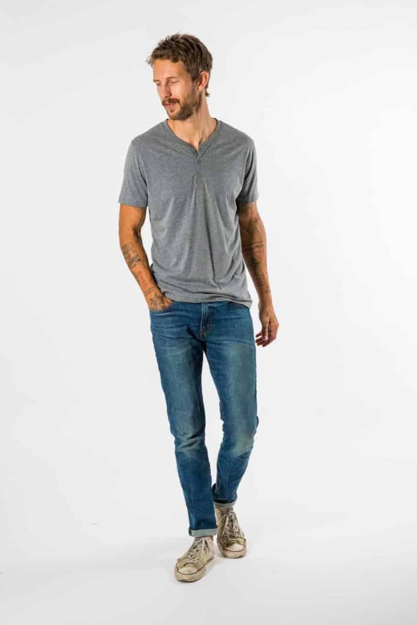 Purchased this shirt for my husband, I wanted to get him something a little nicer than a standard tee, and I was not disappointed! I love the detail of the Henley and it fits him great; very happy with the quality.